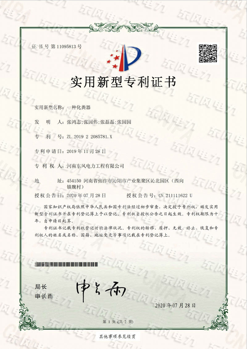 一種化糞器-實(shí)用新型專利證書